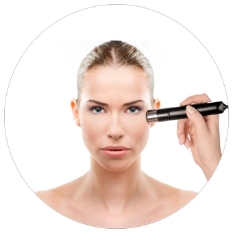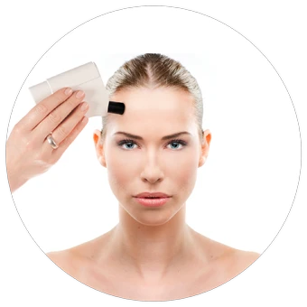 De huidmeting wordt verricht op vier punten in het gezicht. Midden van het voorhoofd, beide wangen en de kin. Het gemiddelde van deze metingen bepaald de hydratatie waarde van de huid.